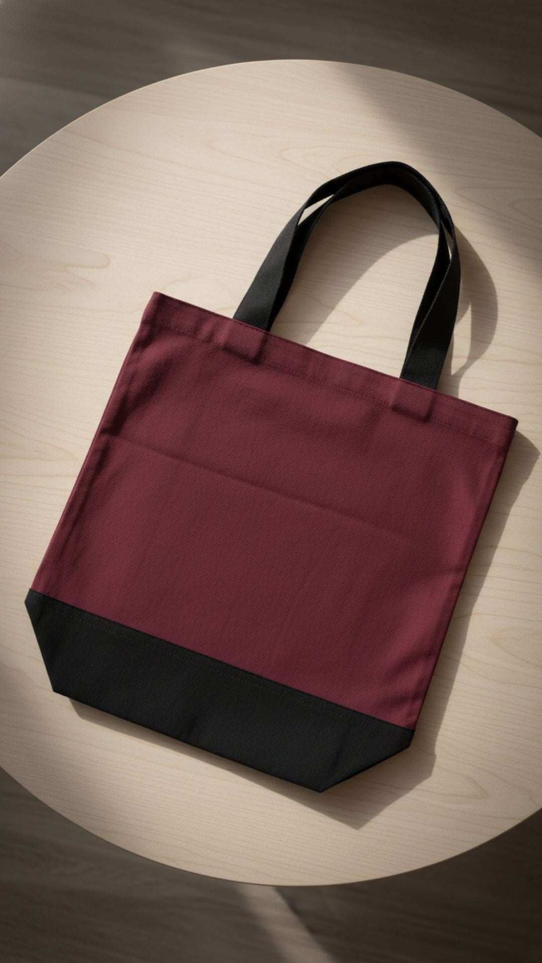 Simple | Chic | Sustainable Carry your everyday essentials in style with this minimalist two-tone tote bag from Midori Arts. Made from sturdy canvas, it combines a rich maroon upper with a crisp b...