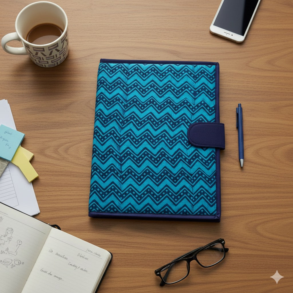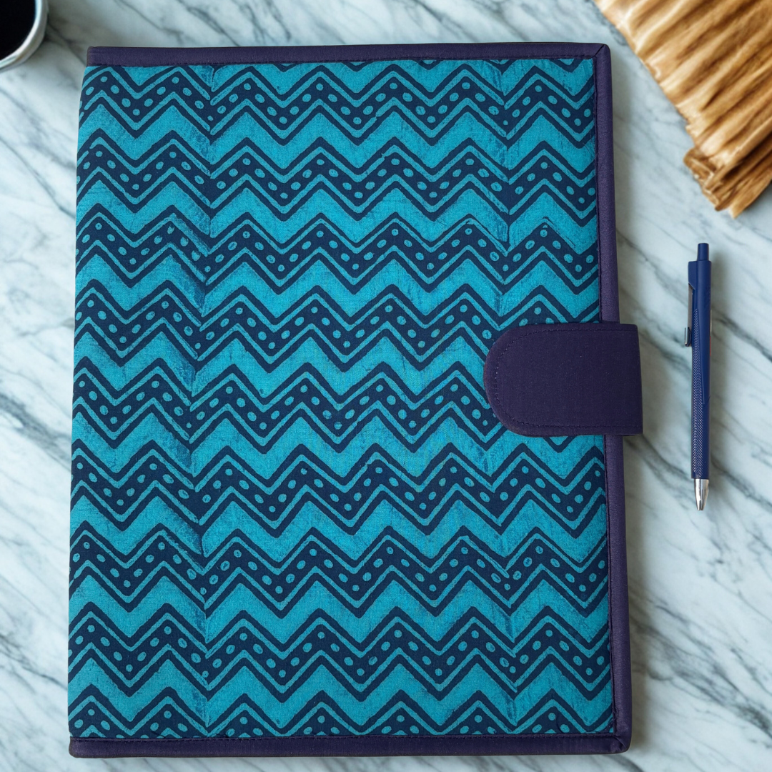 Print- Zig ZagColour -BlueDescription - Stay stylish and organized with this handcrafted file folder, designed using cotton fabric. Perfect for office meetings, travel, or daily use carry your docu...